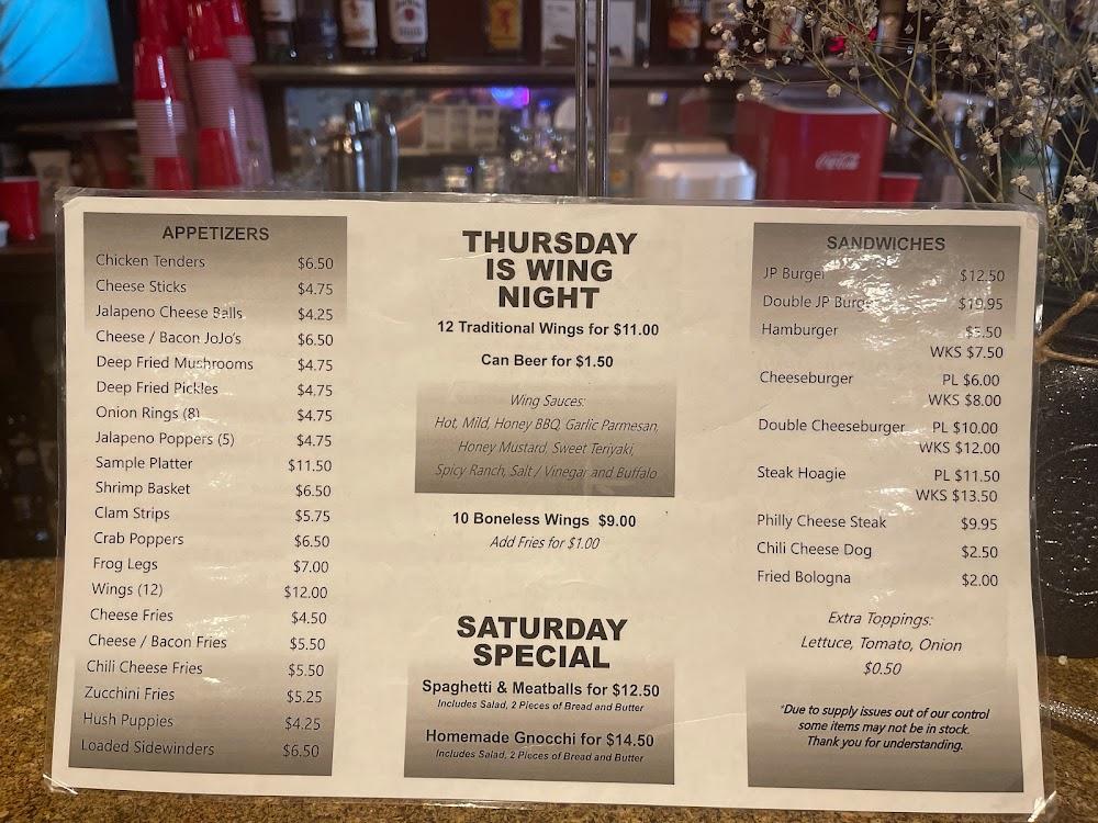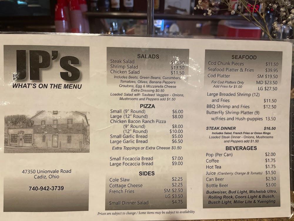 Welcome to JP's Saloon, a charming old-fashioned dive bar in Cadiz, Ohio, where good times and great food come together. Proudly family-owned, we offer a cozy atmosphere paired with exceptional cocktails and an extensive beer selection. While our small kitchen means you might experience a slight wait, our delicious homemade dishes are worth it! We're the perfect spot for lunch, dinner, or a quick bite, and our happy hour specials are a local favorite. With wheelchair accessibility and a vibrant sports atmosphere, JP's Saloon is your go-to gathering place for memorable moments. Join us and savor the local flavors!